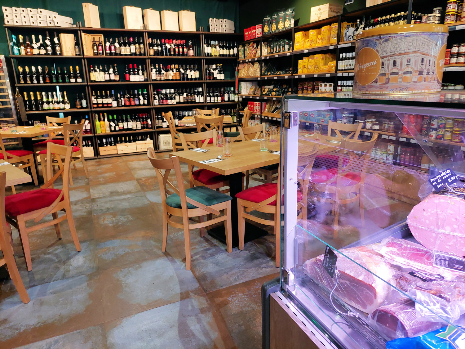 Tym razem wybraliśmy się tam w środku wakacji, we dwoje, na małą kolacyjkę, nic szczególnego. Byłam mile zaskoczona wielkością lokalu po rozbudowie. Dużo więcej miejsca wokół stolików, zadaszony, oszklony taras. No i sklep, w którym można kupić oryginalne włoskie specjały. Akurat było przed dostawą, więc na półkach było sporo wolnego miejsca, ale na pewno tu wrócę, żeby zobaczyć co jeszcze dobrego można nabyć. Ceny w sklepie nie nazbyt wygórowane.