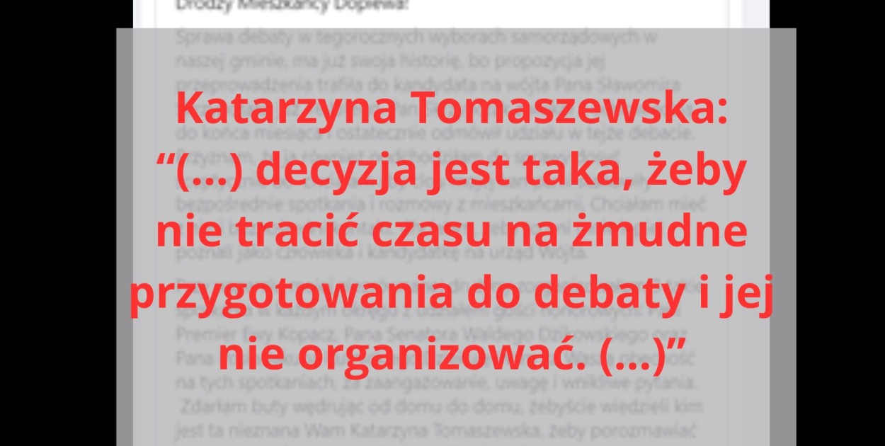 Skontaktowałam się telefonicznie z Panią Katarzyną Tomaszewską, która odmówiła mi udziału w debacie.