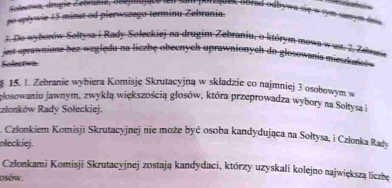 W 2017 i 2018 roku uchwalono statuty sołectw, które są podstawowymi dokumentami na jakich działają te jednostki pomocnicze. Tak jak je uchwalono, tak zostały one opublikowane w Biuletynie Informacji Publicznej i każdy ma do nich dostęp. Z tym, że w 2021 roku część ich zapisów zostało unieważnionych przez Wojewódzki Sąd Administracyjny. Tego wyroku jednak nie podano do publicznej wiadomości, przez co stworzył się chaos informacyjny i de facto urzędowe strony gminy sieją dezinformację.
